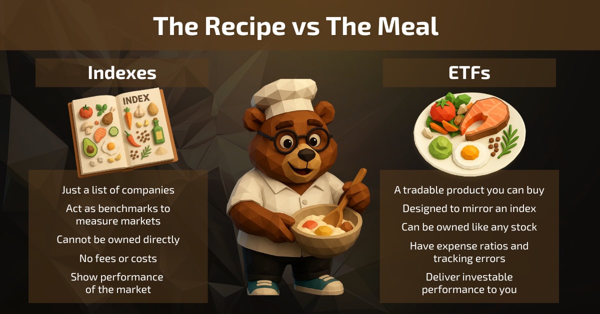 In everyday terms, the index is like a playlist someone curates on Spotify, while the ETF is the album you download and play on repeat. Both are linked, but only one is tangible and usable.