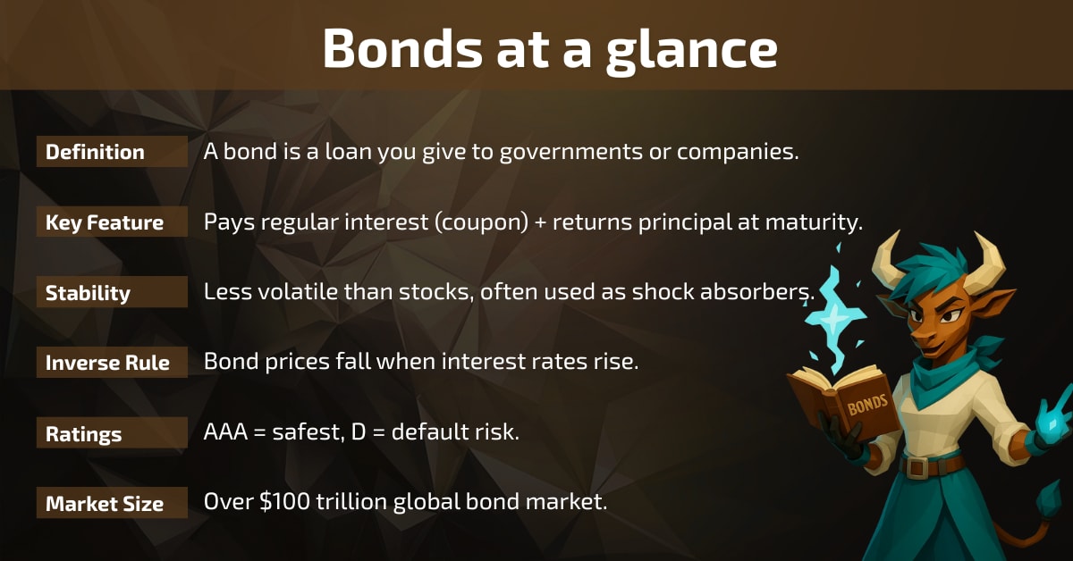 They do not skyrocket overnight, and they rarely trend on social media, but when the market shakes, they keep your portfolio standing. To see why bonds are underrated, we need to unpack what they really are, how they differ from stocks, and why every serious portfolio leans on them for stability.