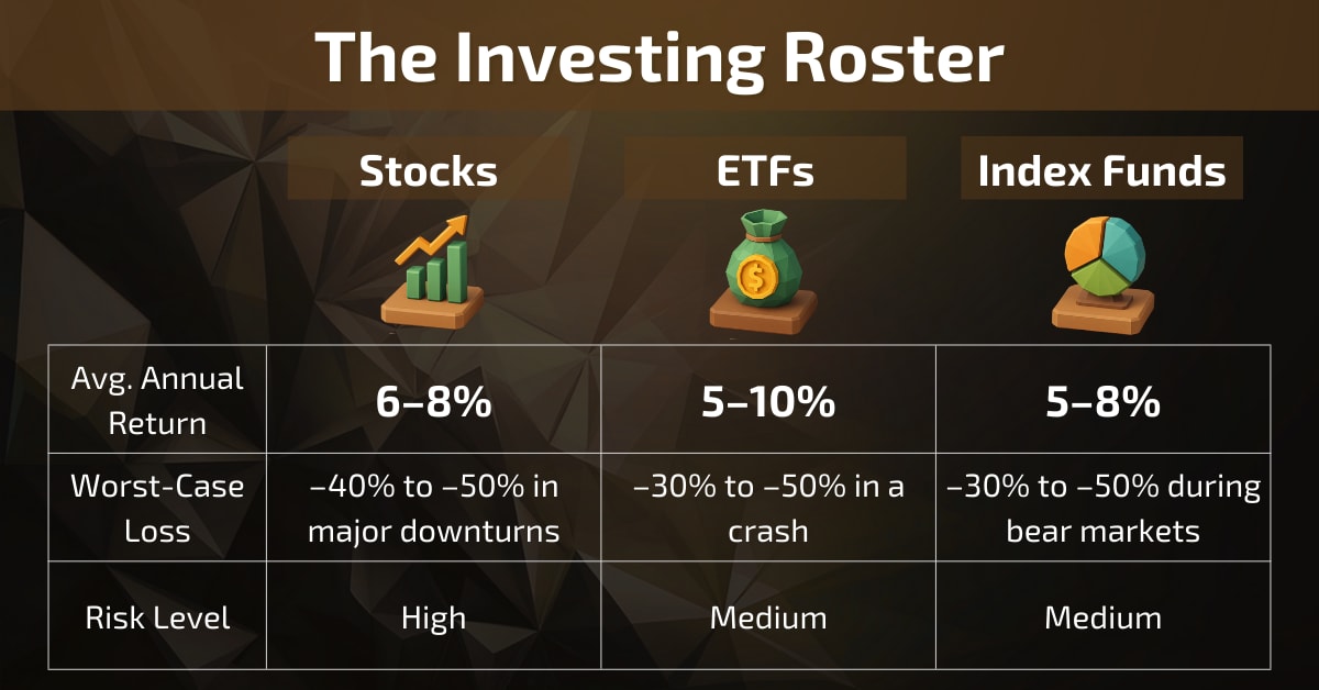 Each comes with its own potential gains, risks, and ideal use cases. The trick is knowing how they work and how much risk you’re really taking before you “equip” them in your portfolio.